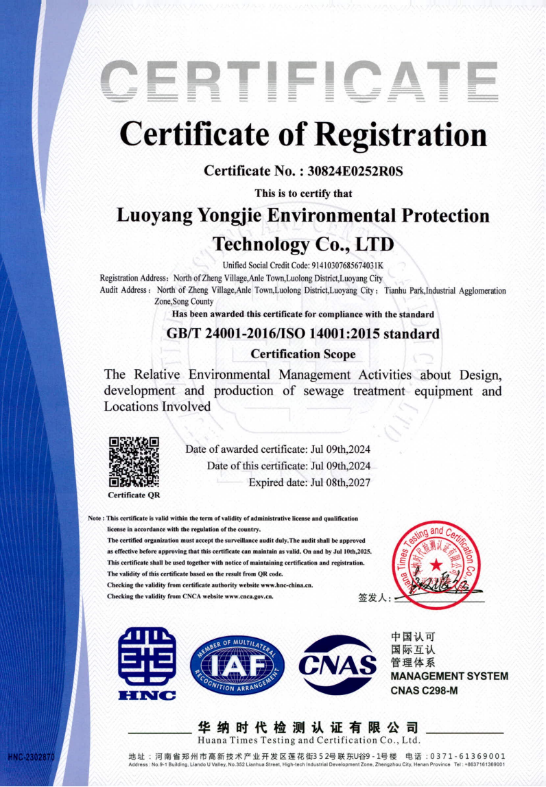 洛陽永潔環保技術有限公司坐落于牡丹之鄉、歷史文化古都洛陽市,是國內較早涉足環保領域的企業之一,是一家集設計、研發、加工、安裝、調試、運維為一體的綜合性環保企業。公司主要從事工業廢水處理、市政污水處理、...